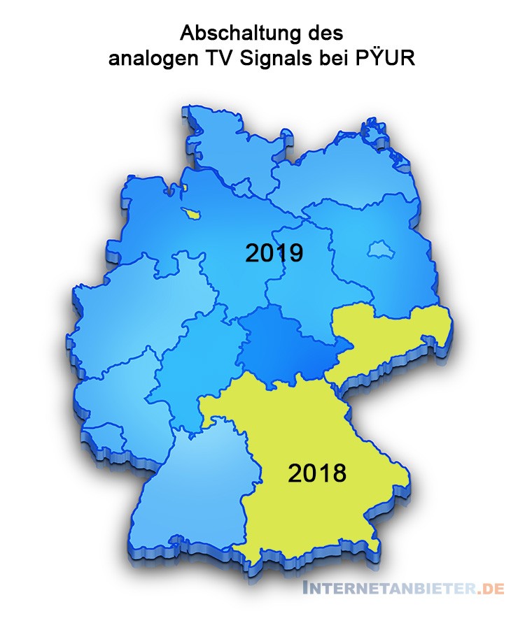 Kunden, die noch analoge TV-Programme empfangen, sollten auf Laufbandeinblendungen achten. Sämtliche Informationen zur bevorstehenden Umstellung können jederzeit unter www.pyur.com/digital abgerufen werden. Hier lässt sich auch der genaue Umschalttag abfragen.